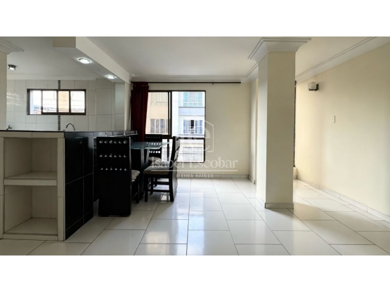Cuenta con sala-comedor, cocina con barra, dos habitaciones con clóset, baño completo, estudio, baño social y zona de oficios. Dispone de tanque de reserva de agua y parqueadero propio para carro, cubierto y con reja de seguridad, brindando mayor comodidad.